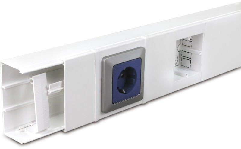 Fehér műanyag kábelcsatorna, fedéllel, PVC, >1250N, UV-álló, -25°C/+60°C